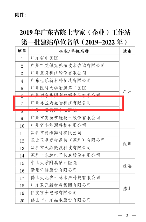 近日,為貫徹把院士、專家等高端人才引入企業(yè),幫助企業(yè)解決技術難題,廣東省科學技術協(xié)會決定在廣東省內41家單位建立“廣東省院士專家(企業(yè))工作站”,建站期為2019年5月-2022年5月。格拉姆科技憑借抗菌活性小肽、免疫活性肽、微生態(tài)制劑等核心技術,以及多年的行業(yè)積累,強大的自主研發(fā)與創(chuàng)新能力,經(jīng)有關單位實地考察調研和專家評審,獲得了廣東省科學技術協(xié)會批準,成為獲批建站單位之一。